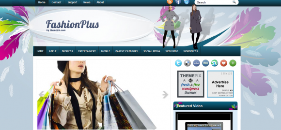 Fashion Plus from themepix is a riot of beautiful colors. With a blue ochre background, feathers in hues of magenta, blue, green and white, and two models about to break into a ramp walk right on top, this theme is a deliciously feminine one. If your blog is about shopping, fashion, clothes, or just general girly chatter, this could be a very chic theme for you. The featured video and slideshow options can be used to display your latest favorites in clothes and shoes.