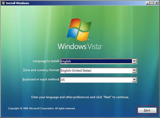 First, insert the Vista DVD into the computer and restart it (to start the boot process). You will be asked to press any key to boot from the DVD: