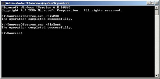 Bootrec.exe /fixMBR  Bootrec.exe /fixBoot